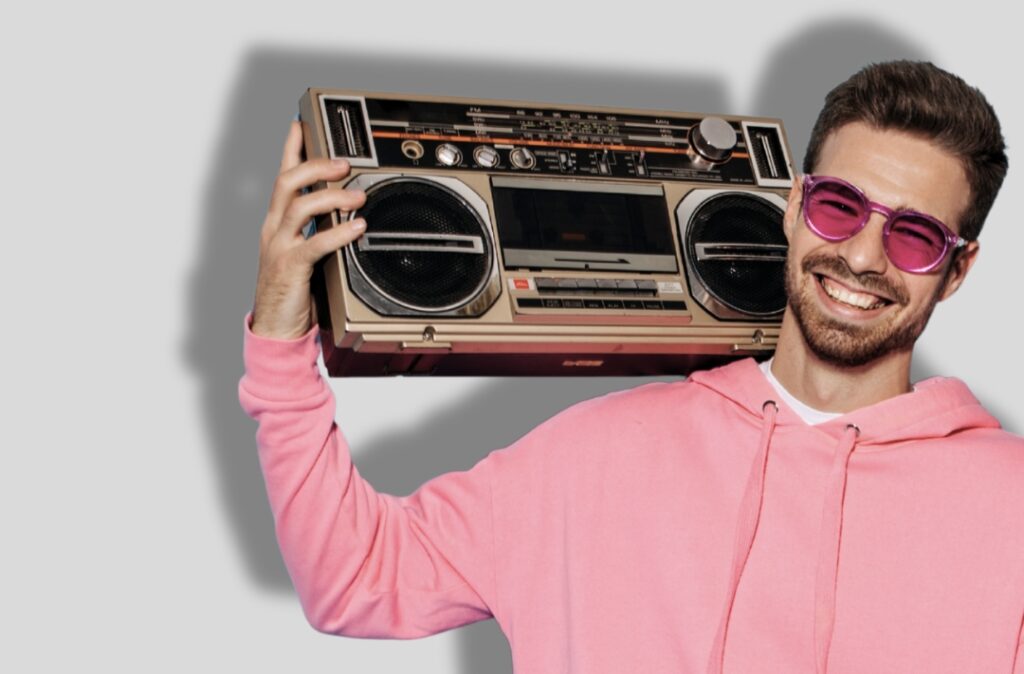 Åben App Store eller Google Play på din mobil og download vores app. Så kan du tage de største hits 80’erne og 90’erne og vores gode værter med på farten.